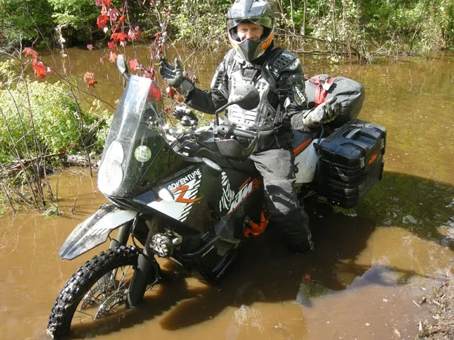 Juin 2010. Je part faire un tour chez Monette sport pour des pièces de maintenance pour ma R1200GS. En entrant dans le 'show room' je remarque la superbe KTM Adventure 990R. Depuis déjà 2 ans, les KTM Adventure me fatigue un peu. Particulièrement depuis que j'ai essayé celle de mon copain Martin lors de notre voyage à Moab. C'est une moto aventure à vocation un peu similaire à la R1200GS mais avec un côté hors route plus adapté. En particulier, la suspension est beaucoup plus adapté au hors route que la GS avec ses 'Telelever' et 'Cantilever'. La 990R est encore plus adapté hors route avec un débatement plus élevé, pas d'ABS et la puissance légèrement supérieure à la 990 régulière. Je regarde ça de plus près et la 'R' est vraiment superbe avec sa couleur particulière en noir/orange/blanc. J'ai fait la gaffe de demander au représentant si ils avaient un démo que je pourais essayer. Il me dit "J'ai justement une 990 régulière neuve qu'on viens de sortir pour la location". Il me donne les clés et me dit d'être de retour avant la fermeture à 18h00!